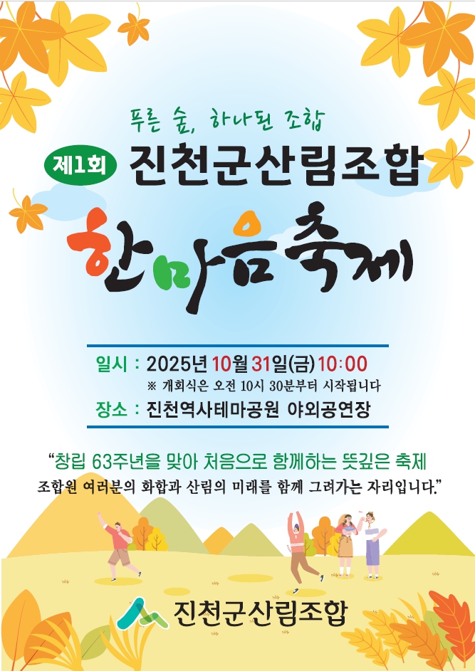 »ê¸²Á¶ÇÕ 63ÁÖ³âÀ» ±â³äÇÏ°í “Çª¸¥½£ ÇϳªµÈ Á¶ÇÕ”À̶õ ÁÖÁ¦·Î ÁøÃµ±º»ê¸²Á¶ÇÕ(Á¶ÇÕÀå À̾çÈ£)¿¡¼ ÁÖ°üÇÏ´Â Á¦1ȸ ÁøÃµ±º»ê¸²Á¶ÇÕ ÇѸ¶À½ÃàÁ¦°¡ ¿À´Â 10¿ù31ÀÏ(±Ý) ¿ÀÀü 10½ÃºÎÅÍ(°³¸·½Ä 10½Ã30ºÐ) »ý°ÅÁøÃµ¿ª»çÅ׸¶°ø¿ø ¾ß¿Ü°ø¿¬Àå¿¡¼ ¼º´ëÇÏ°Ô °³ÃֵȴÙ.