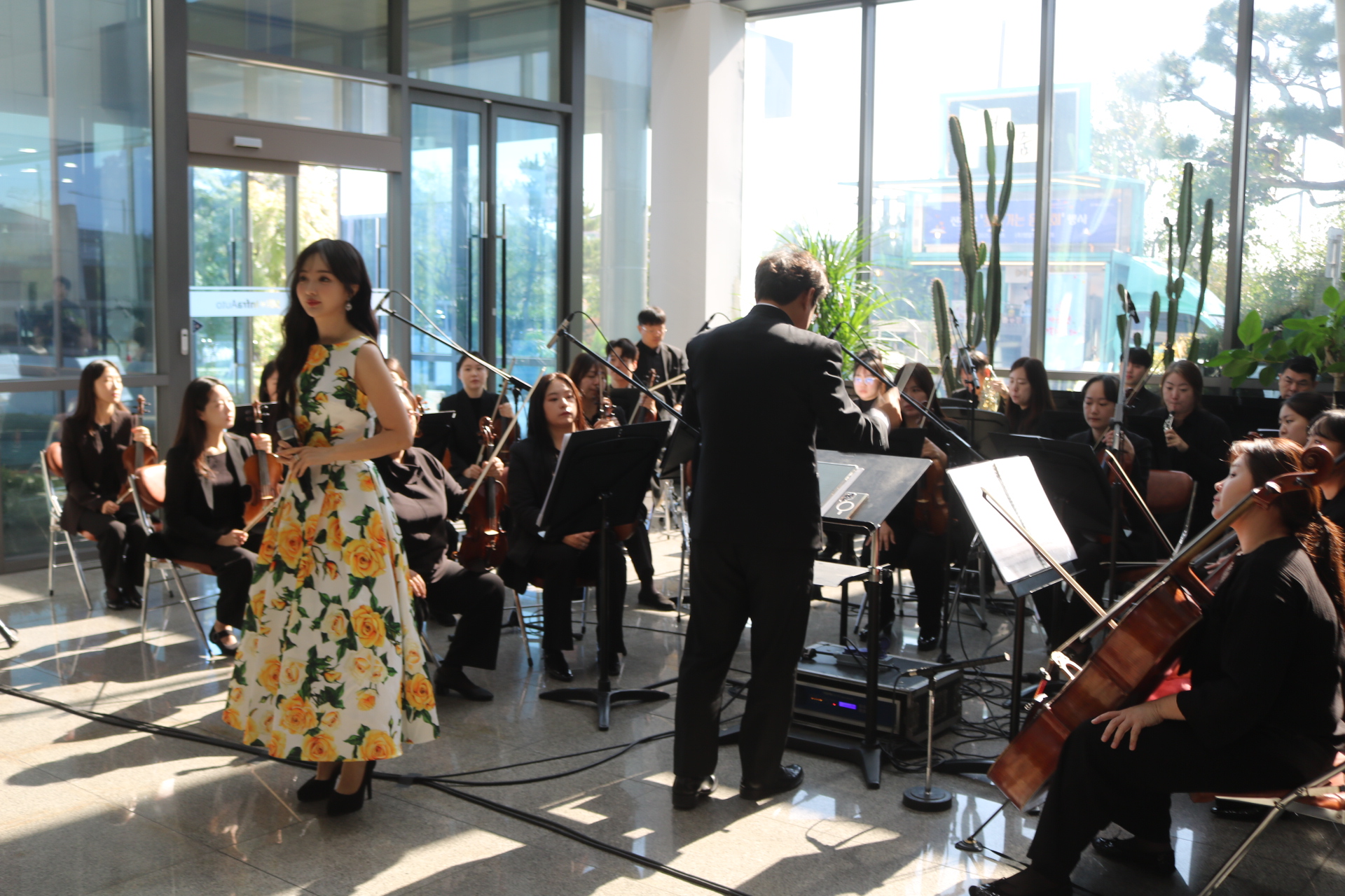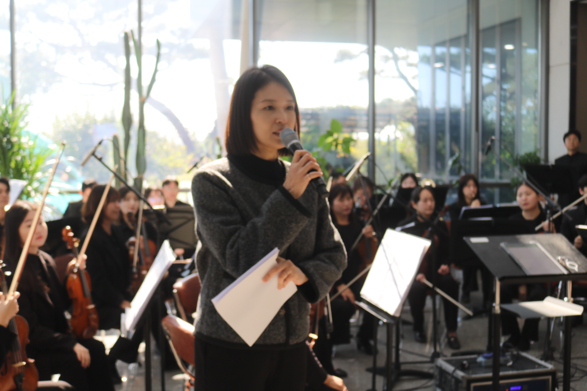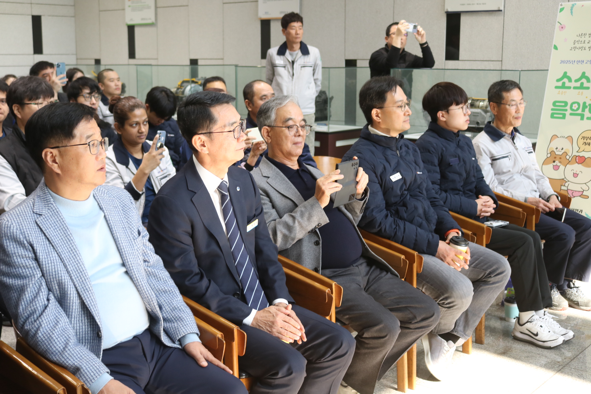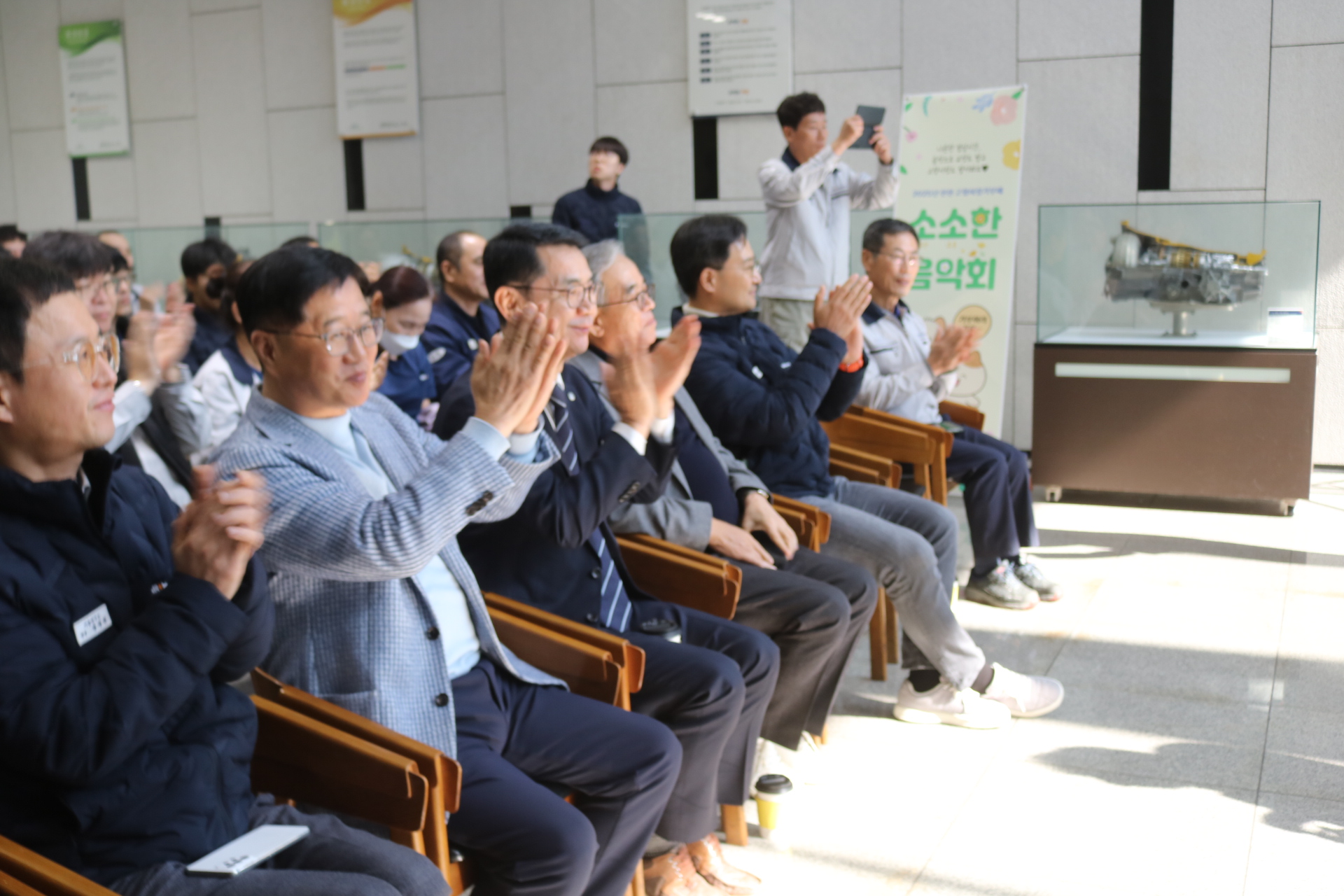 À̳¯ À½¾Çȸ´Â Á÷Àå ³» Á¡½É½Ã°£À» Ȱ¿ëÇØ Á÷¿øµéÀÇ ºÎ´ãÀ» ÁÙÀÌ°í °¡º¿î ¸¶À½À¸·Î À½¾ÇÀ» Áñ±æ ¼ö ÀÖµµ·Ï ÁغñÇßÀ¸¸ç, ¢ß¿¥¾ËÀÎÇÁ¶ó¿ÀÅä ÇÔ»ó½Ä ȸÀå°ú, ÇÔµµÇö ´ëÇ¥, ±è¼º¼ö »çÀå, äÁ¤ÈÆ ÀÚÄ¡ÇàÁ¤±¹Àå, ±è½Â·¡ ÇàÁ¤Áö¿ø°úÀå ¹× Á÷¿øµéÀÌ Âü¼®Çß°í °ø¿¬Àº ÁøÃµ±º¸³±³Çâ¾Ç´Ü°¼öÇü ´ÜÀåÀÌ Á¤¼º²¯ Áغñ, ¼ÒÇÁ¶ó³ë Á¤ÇÏÀº Å×³Ê ±ÇÀ²ÀÇ ÁÖ¿Á°°Àº °°Àº ³ë·¡¿Í ´Ùä·Î¿î ¼±À²·Î °¡µæ ä¿öÁ® »ç¿øµé ¸ðµÎ´Â ¸ðó·³ »ç³»¿¡¼ ¸ÂÀÌÇÏ´Â À½¾Çȸ¶ó ¸Å¿ì Èï¹Ì·Î ¿ì¸é¼ Áñ°Å¿î ½Ã°£À» °¡Á® ¹Ú¼ö °¥Ã¤¸¦ º¸³Â´Ù.