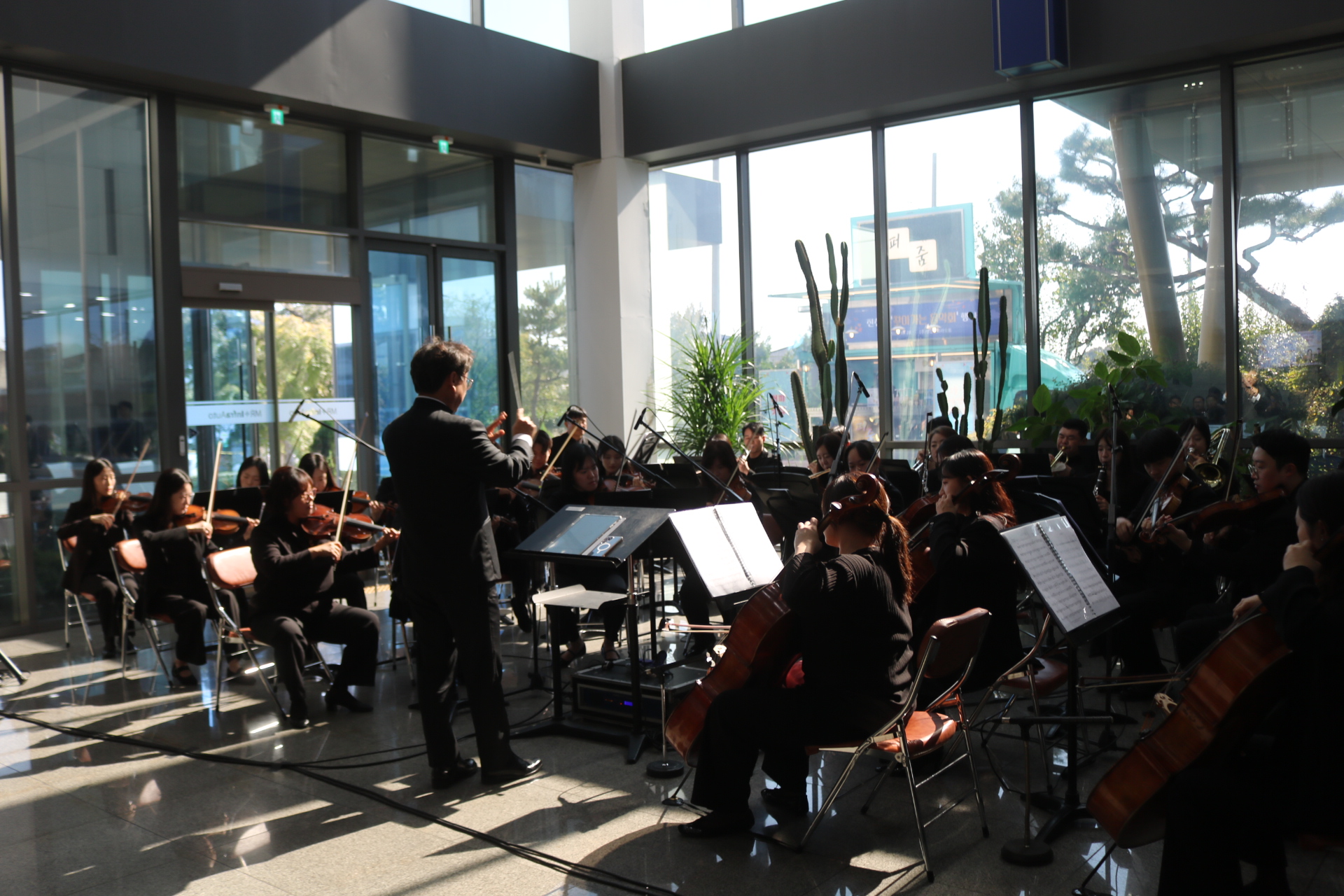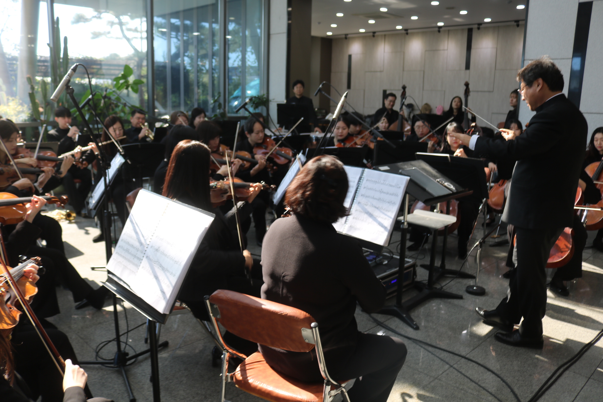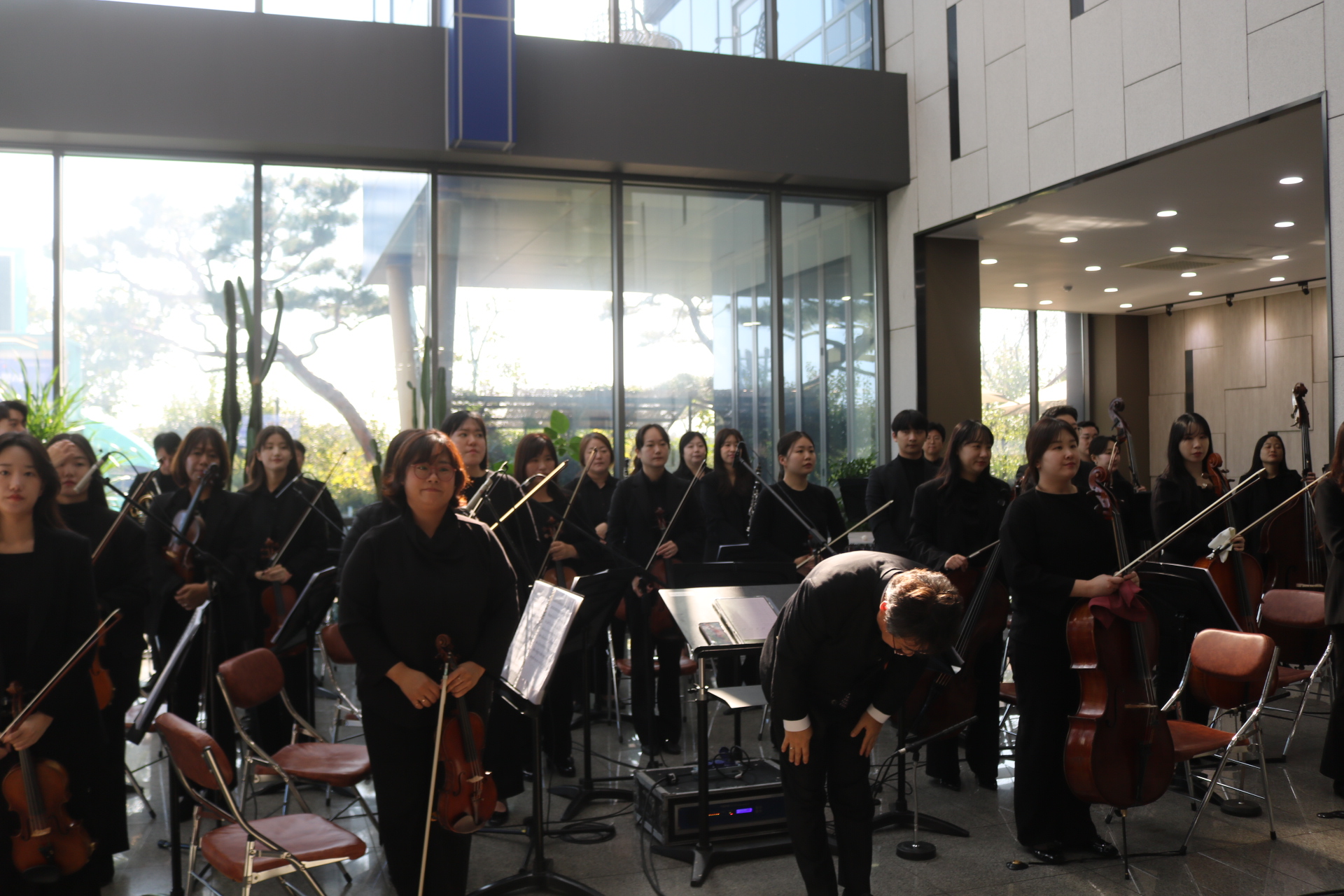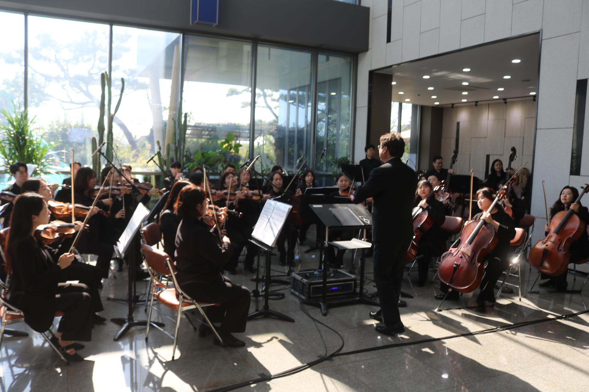 À̳¯ À½¾Çȸ´Â Á÷Àå ³» Á¡½É½Ã°£À» Ȱ¿ëÇØ Á÷¿øµéÀÇ ºÎ´ãÀ» ÁÙÀÌ°í °¡º¿î ¸¶À½À¸·Î À½¾ÇÀ» Áñ±æ ¼ö ÀÖµµ·Ï ÁغñÇßÀ¸¸ç, ¢ß¿¥¾ËÀÎÇÁ¶ó¿ÀÅä ÇÔ»ó½Ä ȸÀå°ú, ÇÔµµÇö ´ëÇ¥, ±è¼º¼ö »çÀå, äÁ¤ÈÆ ÀÚÄ¡ÇàÁ¤±¹Àå, ±è½Â·¡ ÇàÁ¤Áö¿ø°úÀå ¹× Á÷¿øµéÀÌ Âü¼®Çß°í °ø¿¬Àº ÁøÃµ±º¸³±³Çâ¾Ç´Ü°¼öÇü ´ÜÀåÀÌ Á¤¼º²¯ Áغñ, ¼ÒÇÁ¶ó³ë Á¤ÇÏÀº Å×³Ê ±ÇÀ²ÀÇ ÁÖ¿Á°°Àº °°Àº ³ë·¡¿Í ´Ùä·Î¿î ¼±À²·Î °¡µæ ä¿öÁ® »ç¿øµé ¸ðµÎ´Â ¸ðó·³ »ç³»¿¡¼ ¸ÂÀÌÇÏ´Â À½¾Çȸ¶ó ¸Å¿ì Èï¹Ì·Î ¿ì¸é¼ Áñ°Å¿î ½Ã°£À» °¡Á® ¹Ú¼ö °¥Ã¤¸¦ º¸³Â´Ù.