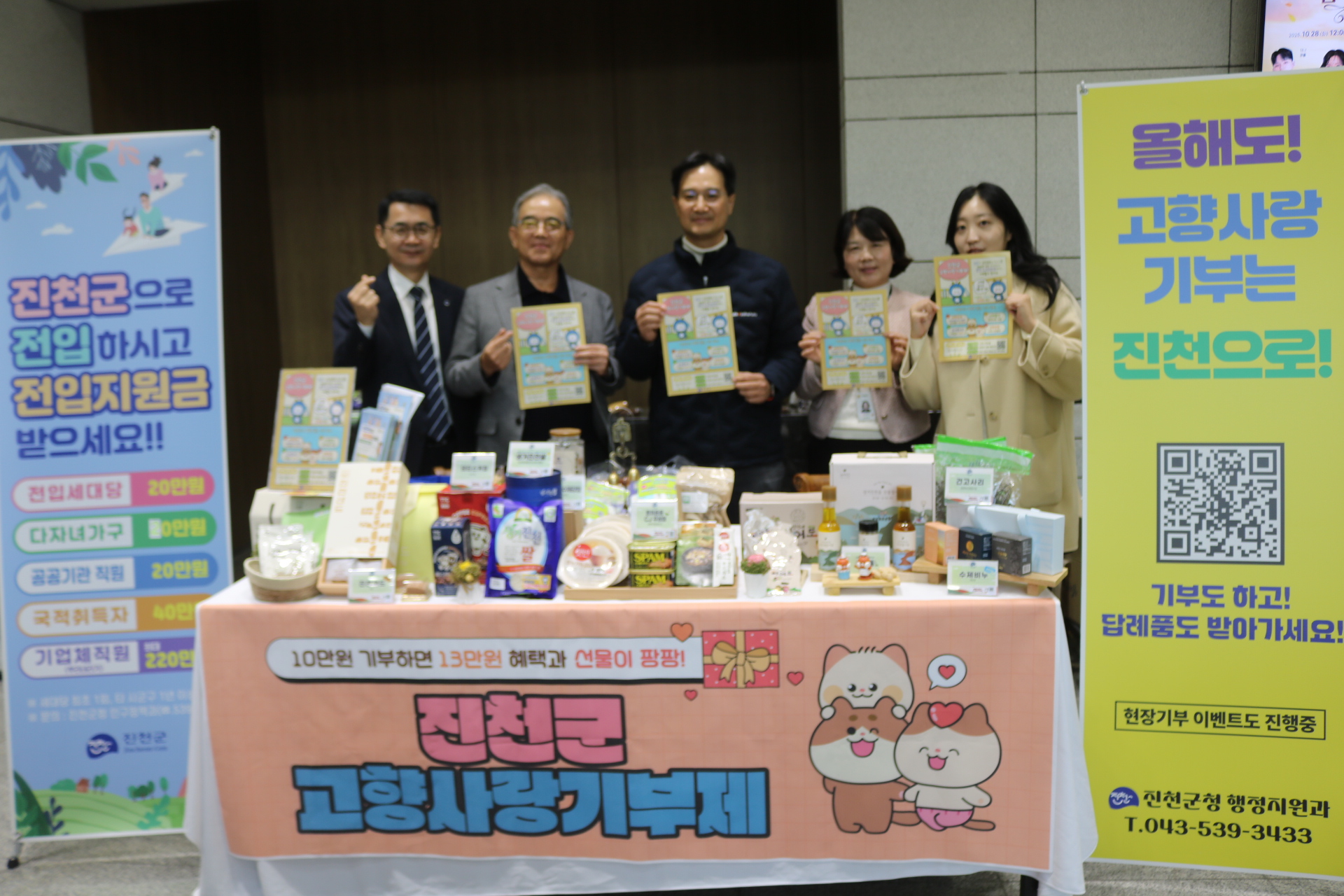 ¶ÇÇÑ, °ø¿¬Àå ÇÑÂÊ¿¡¼´Â °íÇâ»ç¶û±âºÎÁ¦ È«º¸¿Í ´ä·Êǰ Àü½Ã, ȸ»ç¿¡¼ ¸¶·ÃÇÑ Ä¿ÇÇ ÄíŰ µîǪµåÆ®·Â µîÀ» ÅëÇØ Á÷¿øµéÀÌ ÇÔ²² Áñ±â´Â °ø°£µµ ¸¶·ÃÇß´Ù.