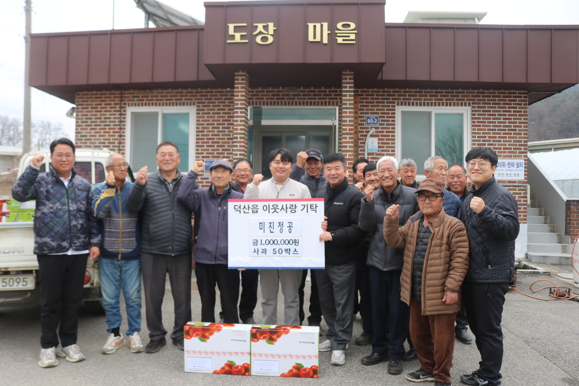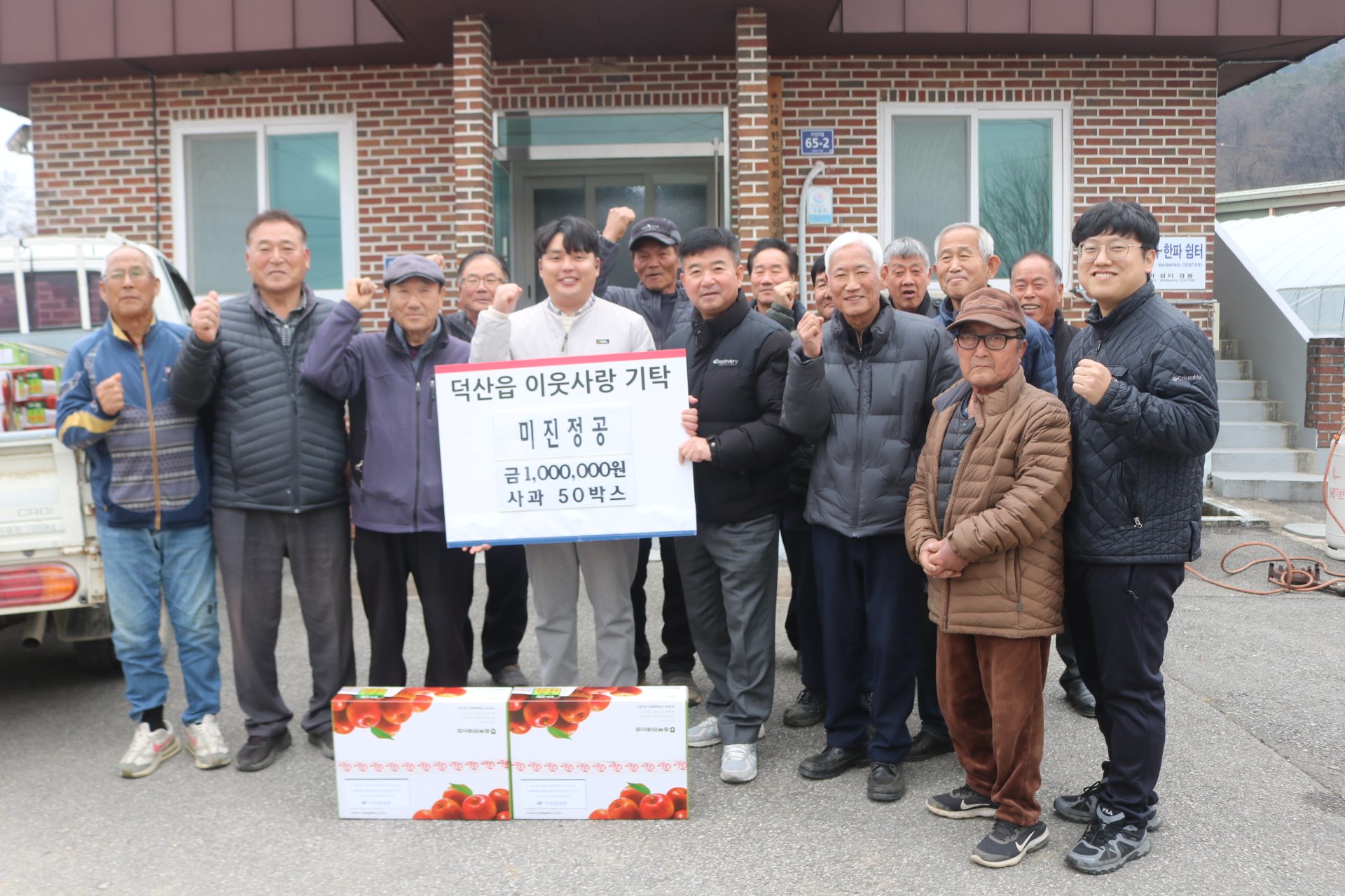 ÁøÃµ±º ´ö»êÀ¾ ¹ÌÁøÁ¤°ø¢ß(´ëÇ¥ÀÌ»ç Ãֿ)Àº 12¿ù23ÀÏ ¿¬¸»À» ¸Â¾Æ ´ö»êÀ¾ ¼ÒÀç µµÀ帶À»(ÀÌÀå ¹ÚÀ±Áø)¿¡ »ç°ú 40¹Ú½º(200¸¸¿ø »ó´ç)¿Í Çö±Ý 100¸¸¿øÀ» ±âŹÇß´Ù.