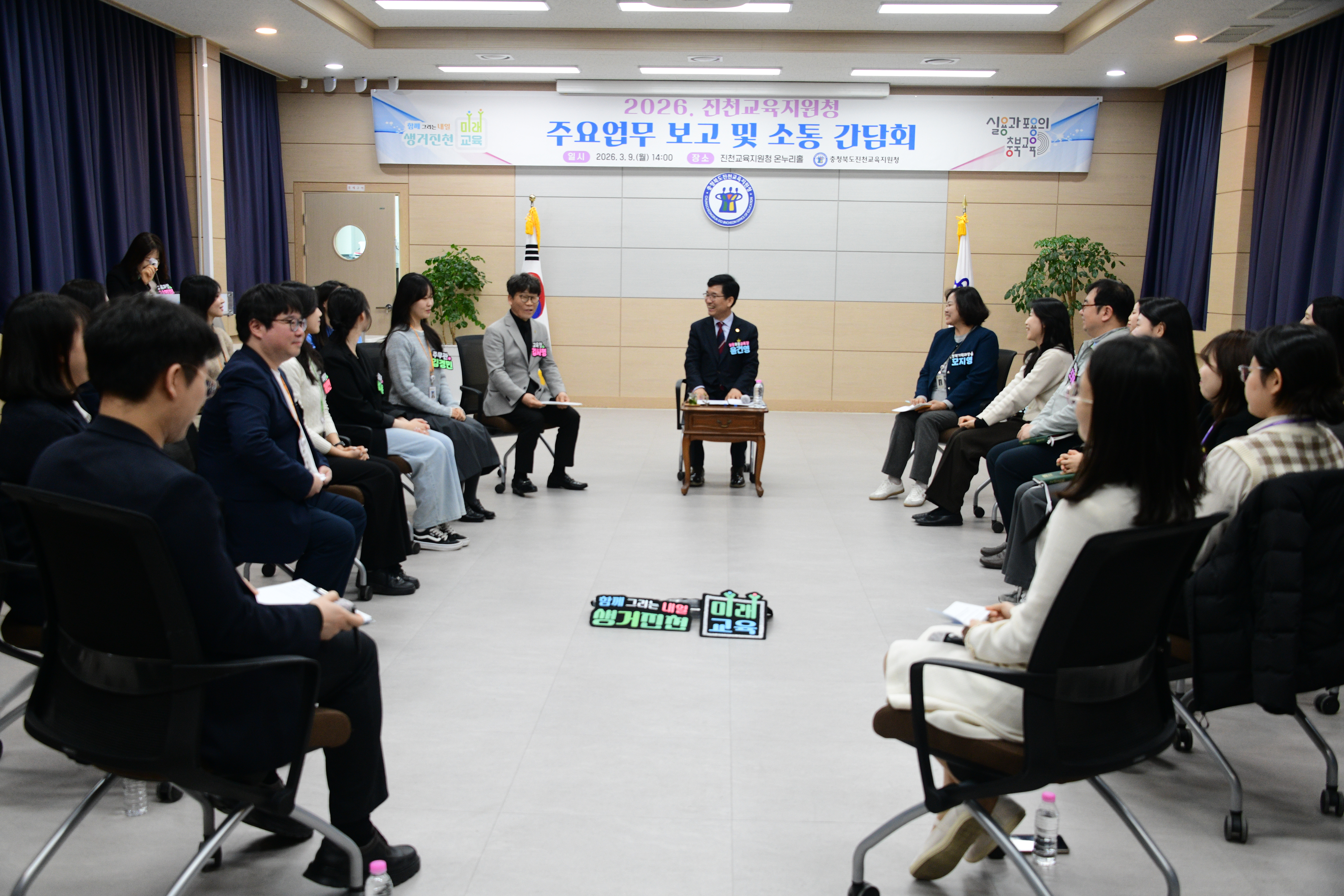 ÃæÃ»ºÏµµÁøÃµ±³À°Áö¿øÃ»(±³À°Àå ±è»ç¸í)Àº 3¿ù9ÀÏ(¿ù), ÁøÃµ±³À°Áö¿øÃ» ¿Â´©¸®È¦¿¡¼ À±°Ç¿µ ÃæÃ»ºÏµµ±³À°°¨°ú ÁøÃµ±³À°Áö¿øÃ» 7∼9±Þ ÀϹÝÁ÷ °ø¹«¿ø 20¿© ¸íÀÌ Âü¼®ÇÑ °¡¿îµ¥ 2026³â ÁÖ¿ä¾÷¹« º¸°í ¹× MZ¼¼´ë ÁÖ¹«°ü ¹× ÁøÃµÁö¿ª ¿©¼º±â¾÷ÀÎ °ø°¨ ¼ÒÅë °£´ãȸ¸¦ °³ÃÖÇß´Ù°í ¹àÇû´Ù.