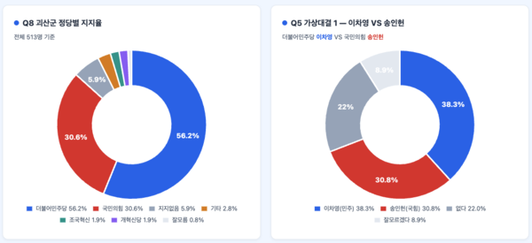 Á¤´ç ÁöÇü ¿ª½Ã ÀÌÂ÷¿µ Èĺ¸¿¡°Ô ¿ìÈ£ÀûÀ¸·Î ³ªÅ¸³µ´Ù. ‘Áö¹æ¼±°ÅÀÏ¿¡ ÅõÇ¥ÇÒ °¡´É¼ºÀÌ °¡Àå ³ôÀº ±«»ê±º¼ö Á¤´çÈ帒 Áú¹®¿¡¼ ´õºÒ¾î¹ÎÁÖ´ç È帴 62.2%, ±¹¹ÎÀÇÈû È帴 30.2%·Î Á¶»çµÆ°í, Á¤´çÁöÁöµµ¿¡¼µµ ´õºÒ¾î¹ÎÁÖ´ç 56.2%, ±¹¹ÎÀÇÈû 30.6%·Î ¹ÎÁÖ´çÀÌ ¾Õ¼¹´Ù. ±«»ê±º¹ÎÀÇ Á¤´ç¼±È£µµ Á¶»ç¿¡¼ ¹ÎÁÖ´ç Èĺ¸ °æÀï·Â¿¡ ÈûÀ» ½Æ°í ÀÖ´Ù´Â ÇØ¼®ÀÌ °¡´ÉÇÏ´Ù.