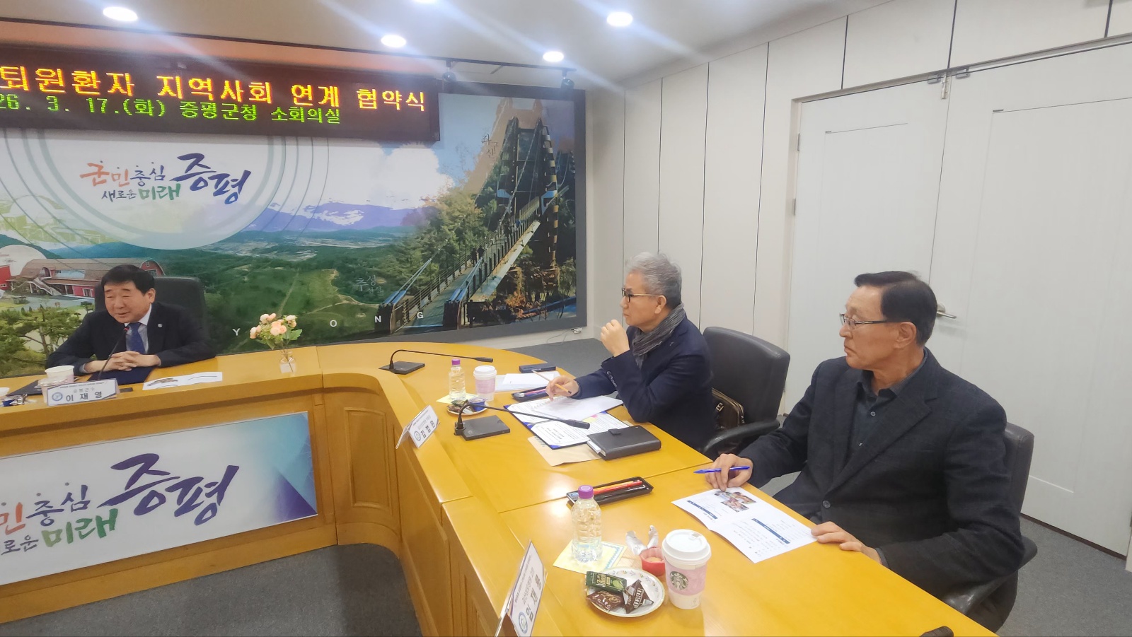 ÃæºÏ ÁõÆò±ºÀº 3¿ù17ÀÏ ±ºÃ» ¼ÒȸÀǽǿ¡¼ ¿¹¹Ì´ã¿ä¾çº´¿ø, ±«»ê¼º¸ðº´¿ø(¿øÀå ±èÁ¾¼º)°ú ‘Åð¿øÈ¯ÀÚ Áö¿ª»çȸ ¿¬°èÀÇ·Ú’¸¦ À§ÇÑ ¾÷¹«Çù¾àÀ» ü°áÇß´Ù.