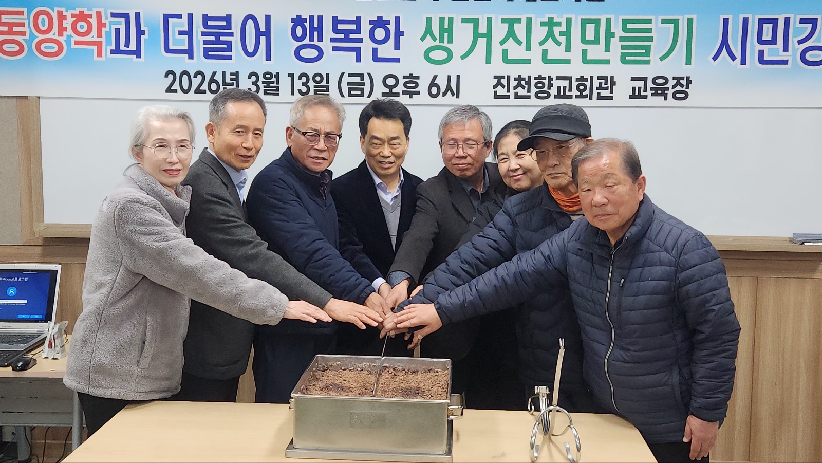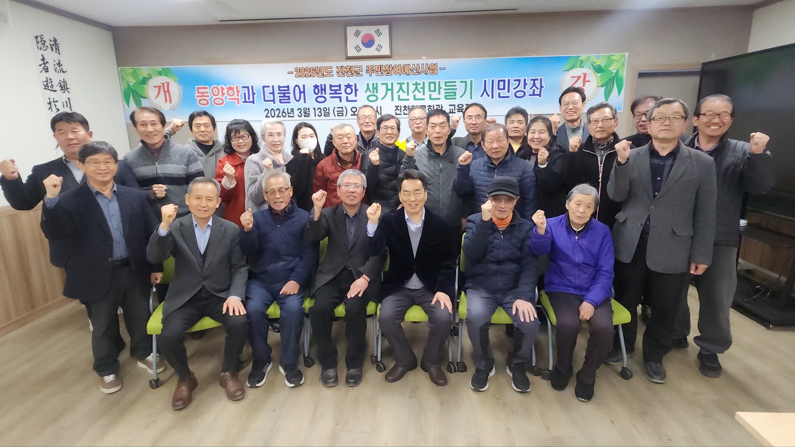 ¼º±Õ°üÀ¯µµÈ¸ ÁøÃµ±ºÁöºÎ(ȸÀå ¿À¸¸È¯)¿Í ÁøÃµÇâ±³(Àü±³ ³²¸í¼ö)°¡ ÁÖ°üÇÏ´Â “¼±ºñ¹®È¿Í ÇÔ²² ÇູÇÑ »ý°ÅÁøÃµ ¸¸µé±â ½Ã¹Î°Á”°³°½ÄÀÌ 3¿ù13ÀÏ(±Ý) ¿ÀÈÄ 6½Ã ¿À¸¸È¯ ¼º±Õ°üÀ¯µµÈ¸ ÁøÃµ±ºÁöºÎȸÀå, °Ç¿ø À±»óö ¹Ú»ç¿Í ȸ¿ø ¼ö°»ý µî 30¿©¸íÀÌ Âü¿©ÇÑ °¡¿îµ¥ ÁøÃµÇⱳȸ°ü 1Ãþ ±³À°Àå¿¡¼ ÀÖ¾ú´Ù.