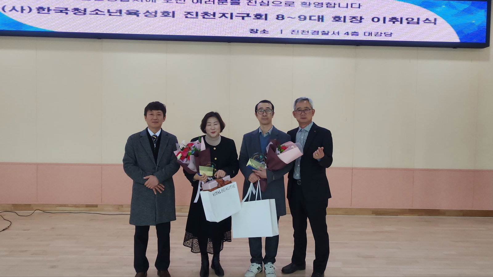 (»ç)Çѱ¹Ã»¼Ò³âÀ°¼ºÈ¸ ÁøÃµÁö±¸È¸ ÀÌÀ¯¼º ȸÀå ÃëÀӽİú ¼Û´ëÇö ȸÀå ÀÌÀÓ½ÄÀÌ Áö³ 3¿ù12ÀÏ ÀÌÀç¸í ±ºÀÇȸÀÇÀå, ±è¸í½Ä ±â¾÷ÀÎȸÀå, ¿ÕÀº¿µ °¡Á·Áö¿ø¼¾ÅÍÀå, ¹èÀÌÁ¤ û¼Ò³â»ó´ã¼¾ÅÍÀå, ÀÌ¿¬¼÷ Á¤½Å°Ç°º¹Áö¼¾Åͺμ¾ÅÍÀå, ÀÌÀåÈ£ ÄɾîÆÊ¼¾ÅÍÀåÀ» ºñ·ÔÇØ û¼Ò³âÀ°¼ºÈ¸ ÀÓ¿ø, °ü°èÀÚ µî 100¿©¸íÀÌ Âü¼®ÇÑ °¡¿îµ¥ ÁøÃµ°æÂû¼ ȸÀǽǿ¡¼ ÀÖ¾ú´Ù.