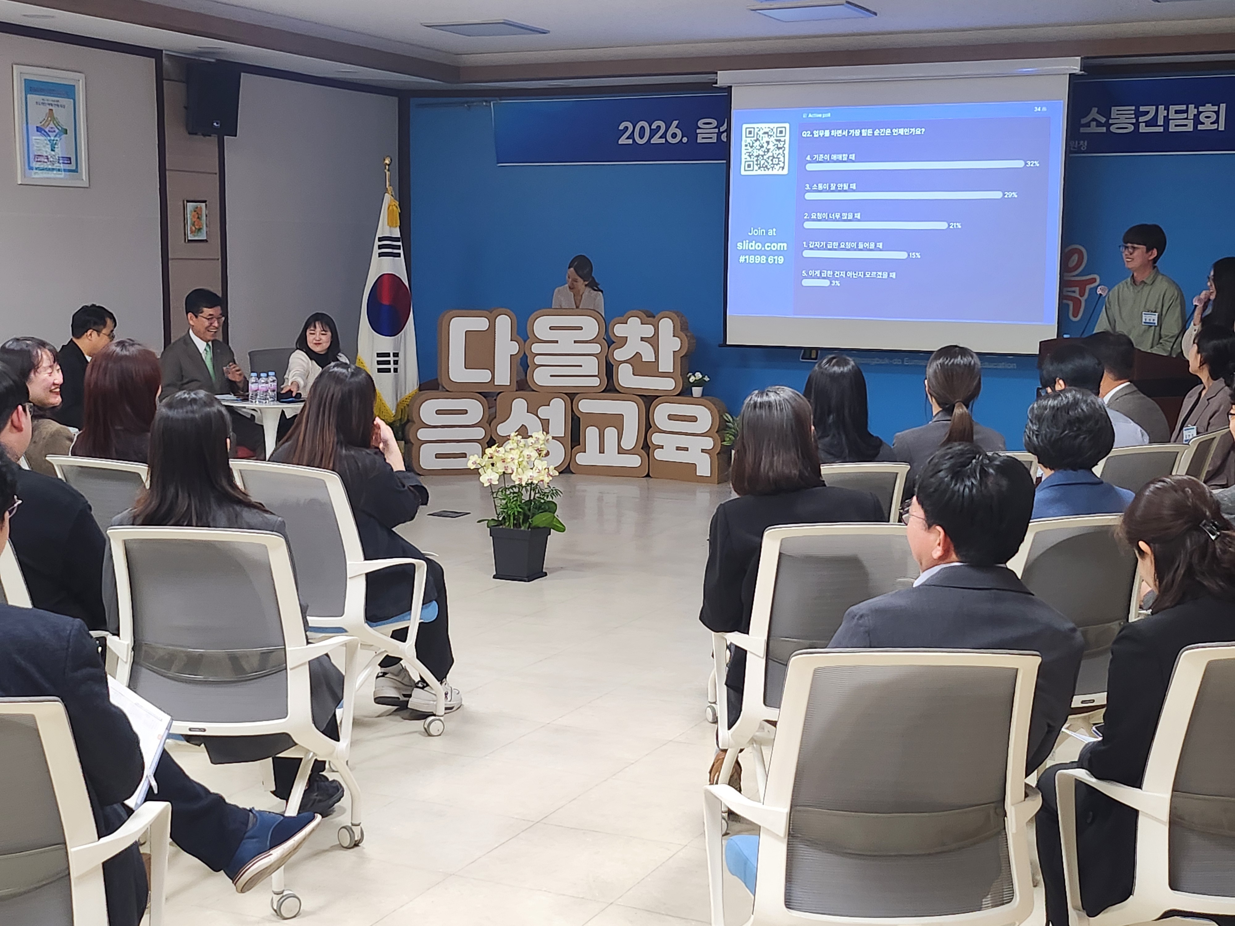 À̹ø °£´ãȸ´Â ‘½Ç·ÂÀÇ Åä´ë À§¿¡ ½Ç¿ë°ú Æ÷¿ëÀ¸·Î ¿©´Â À½¼º±³À°’À» ÁÖÁ¦·Î, ƯÈ÷ ±³À°Áö¿øÃ» 7±ÞºÎÅÍ 9±Þ ÁÖ¹«°üµéÀÌ Á÷Á¢ Âü¿©ÇÏ¿© Çб³¸¦ Áö¿øÇÏ´Â ÇàÁ¤ÀÇ ¹æÇâ°ú ¿ªÇÒ¿¡ ´ëÇØ ÀÚÀ¯·Ó°Ô ÀǰßÀ» ³ª´©´Â ¹æ½ÄÀ¸·Î ¿î¿µµÇ¾ú´Ù.